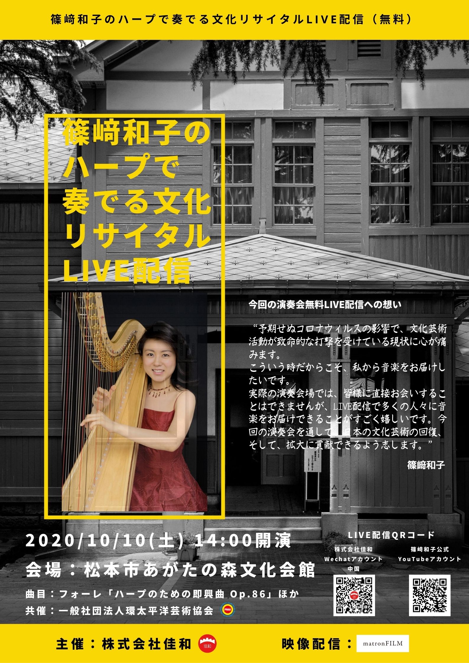 「篠﨑和子のハープで奏でる文化リサイタル」にたくさんのお客様がご覧になり、本当に感謝いたします。